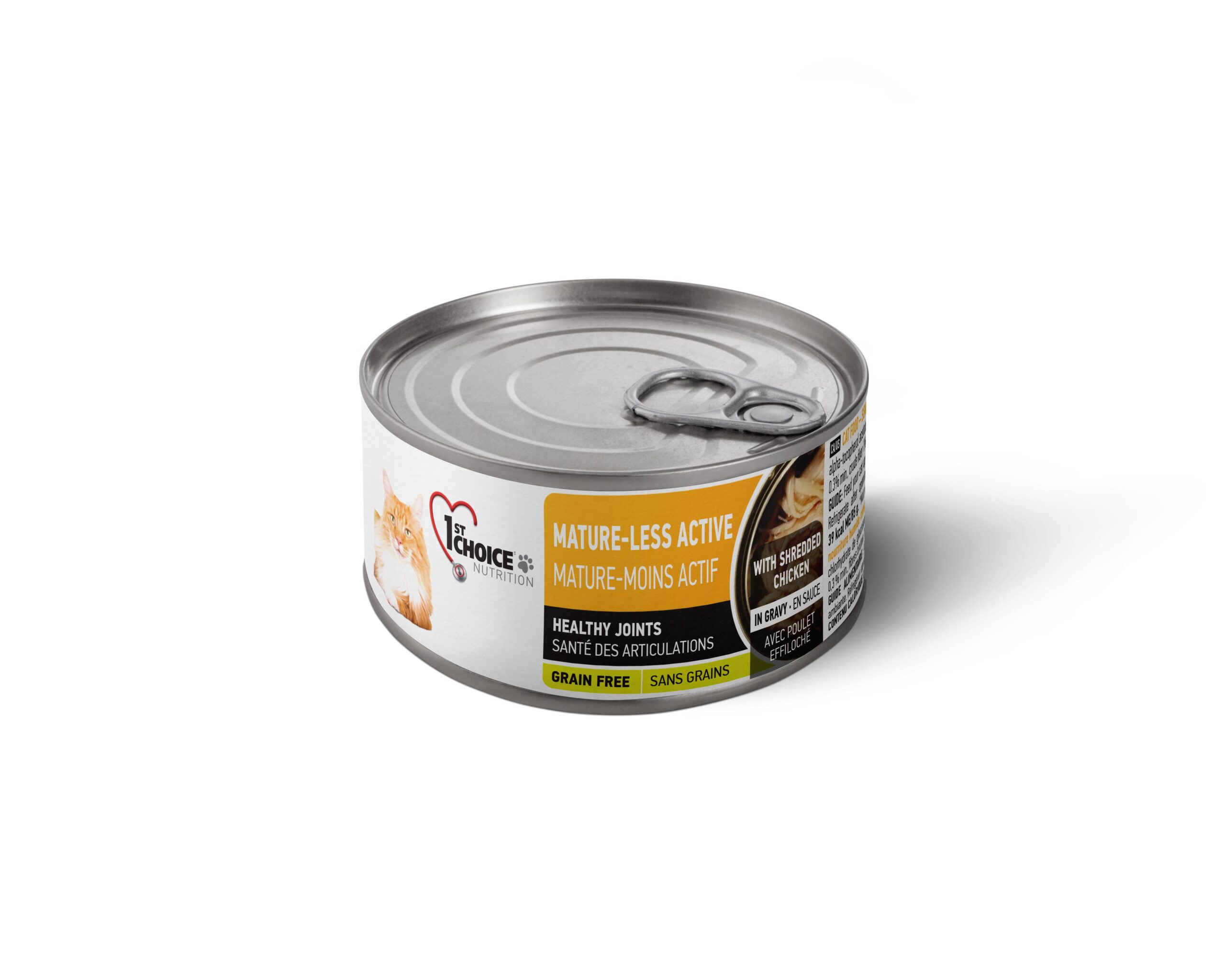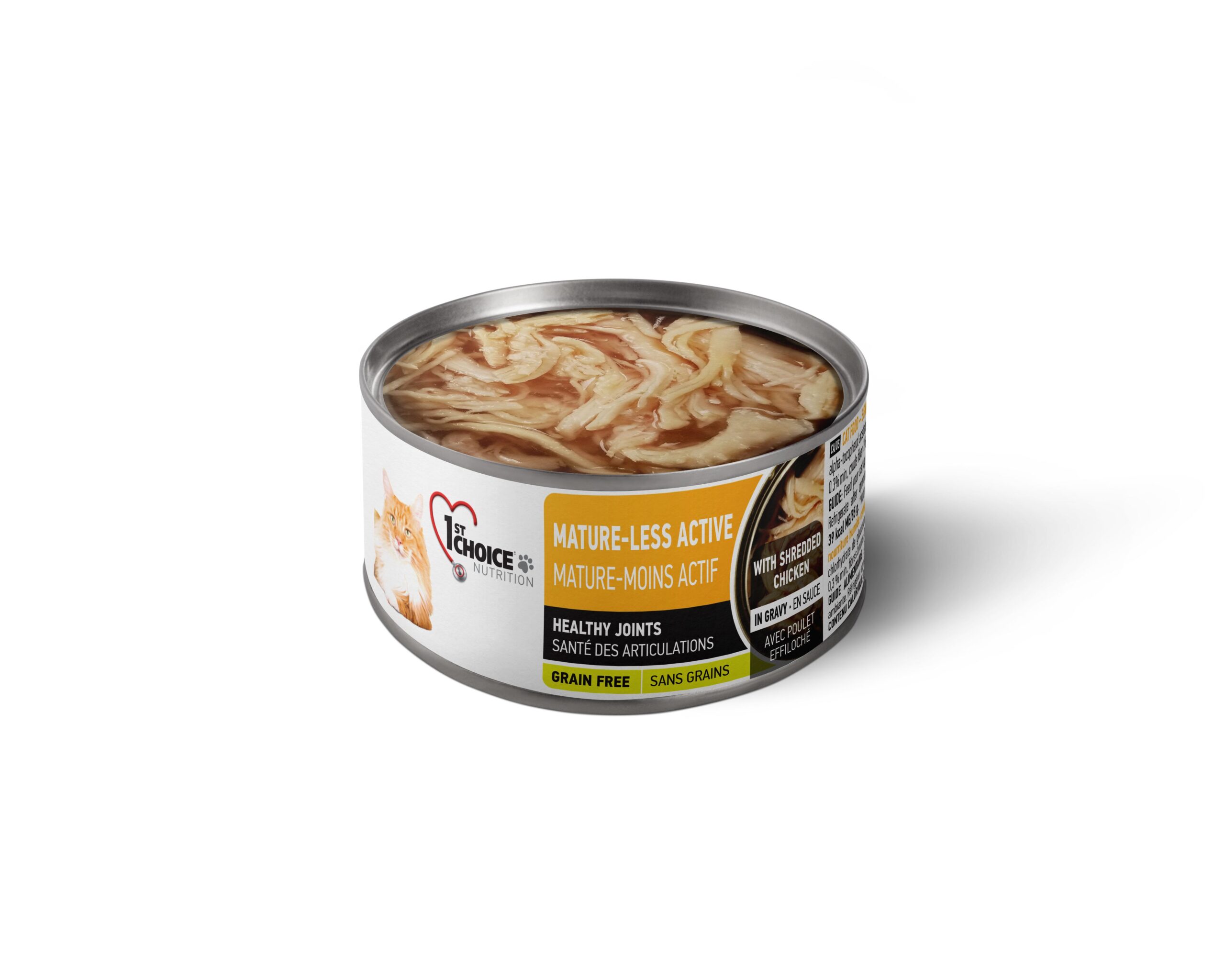 Notre formule humide 1st Choice – Mature – moins actif permet de choyer votre compagnon félin âgé ! En vieillissant, les chats boivent parfois moins d’eau. La combinaison de cette formule humide avec notre nourriture sèche est la solution idéale pour que votre petit compagnon reste bien hydraté. Il appréciera ce délicieux complément qui ajoute de la variété à son menu.