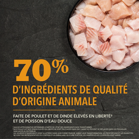 - Les TROIS premiers ingrédients sont du poulet et de la dinde frais ou crus, ce qui en fait un mélange riche en nutriments et notre produit le plus riche en protéines.