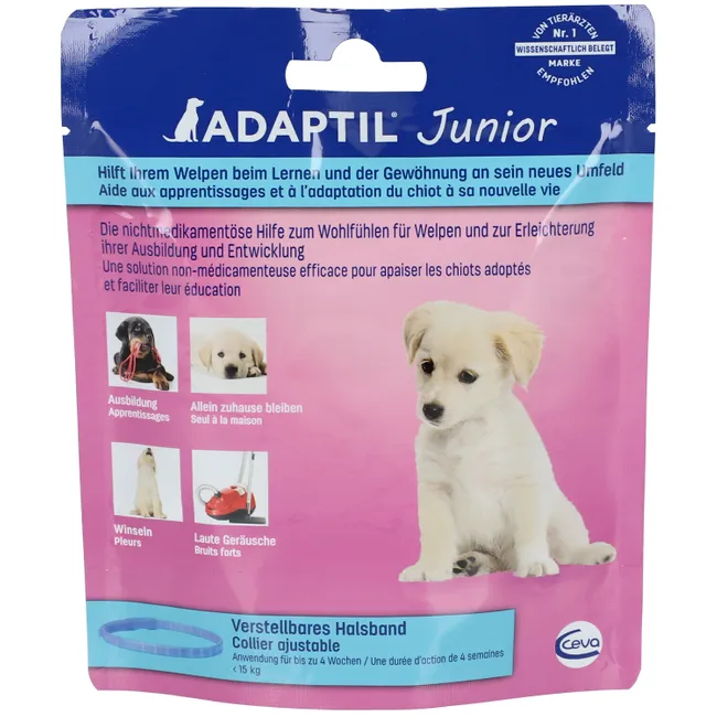 Le collier calmant pour chiots ADAPTIL Junior est une solution efficace pour réconforter les chiots nouvellement adoptés et les aider à devenir des chiens confiants et bien adaptés.