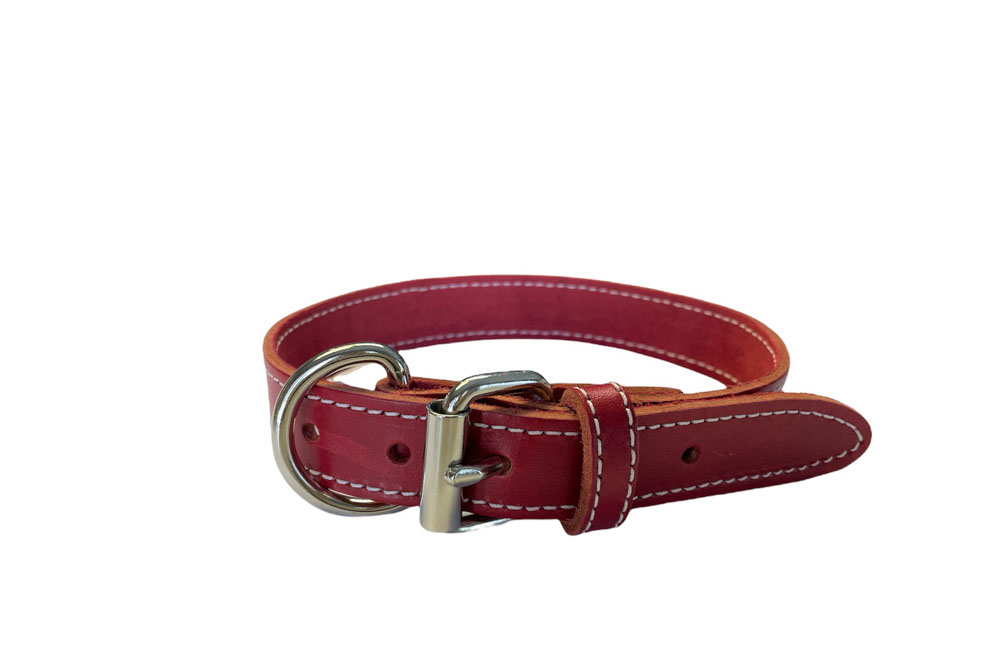 Arizona – Collier cuir latigo simple 3/8″x 10″ | Rouge