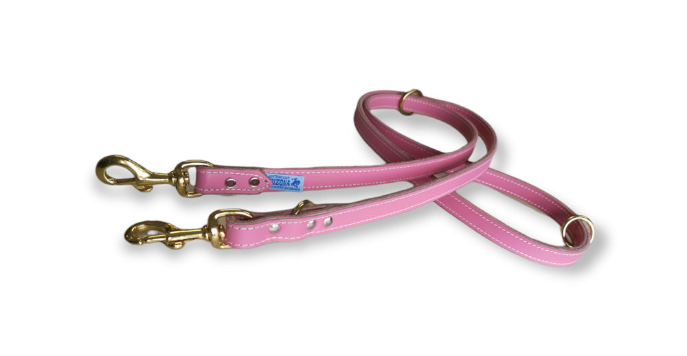 Arizona – Laisse de cuir double 5 positions 3/4 » x 72 » | Rose