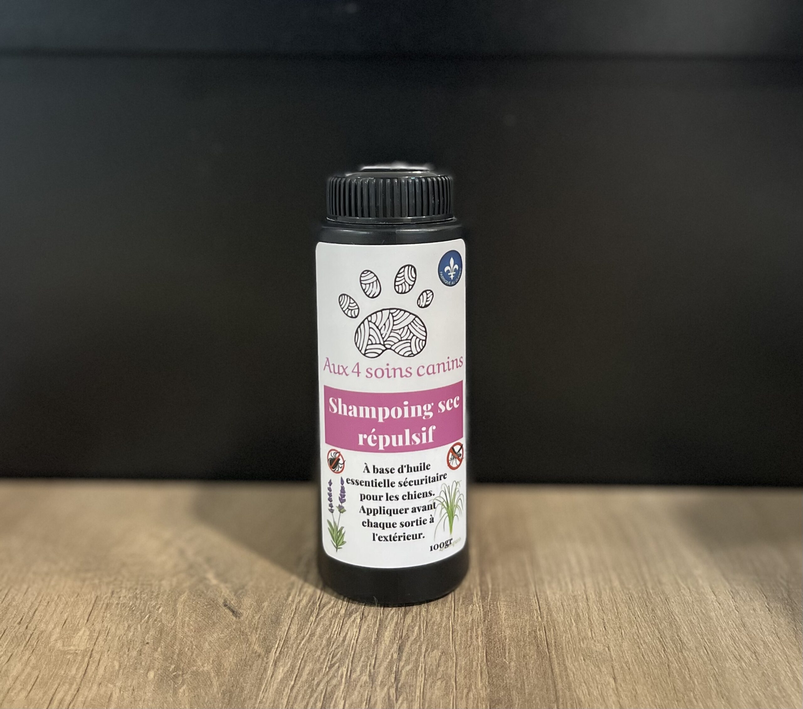 À base d’huile essentielle sécuritaire pour les chiens. Appliquer avant chaque sortie à l’extérieur.