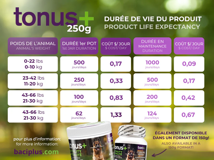 Pour contribuer à la santé des articulations et à l’énergie des chiens, favoriser une récupération rapide et faciliter le processus digestif.