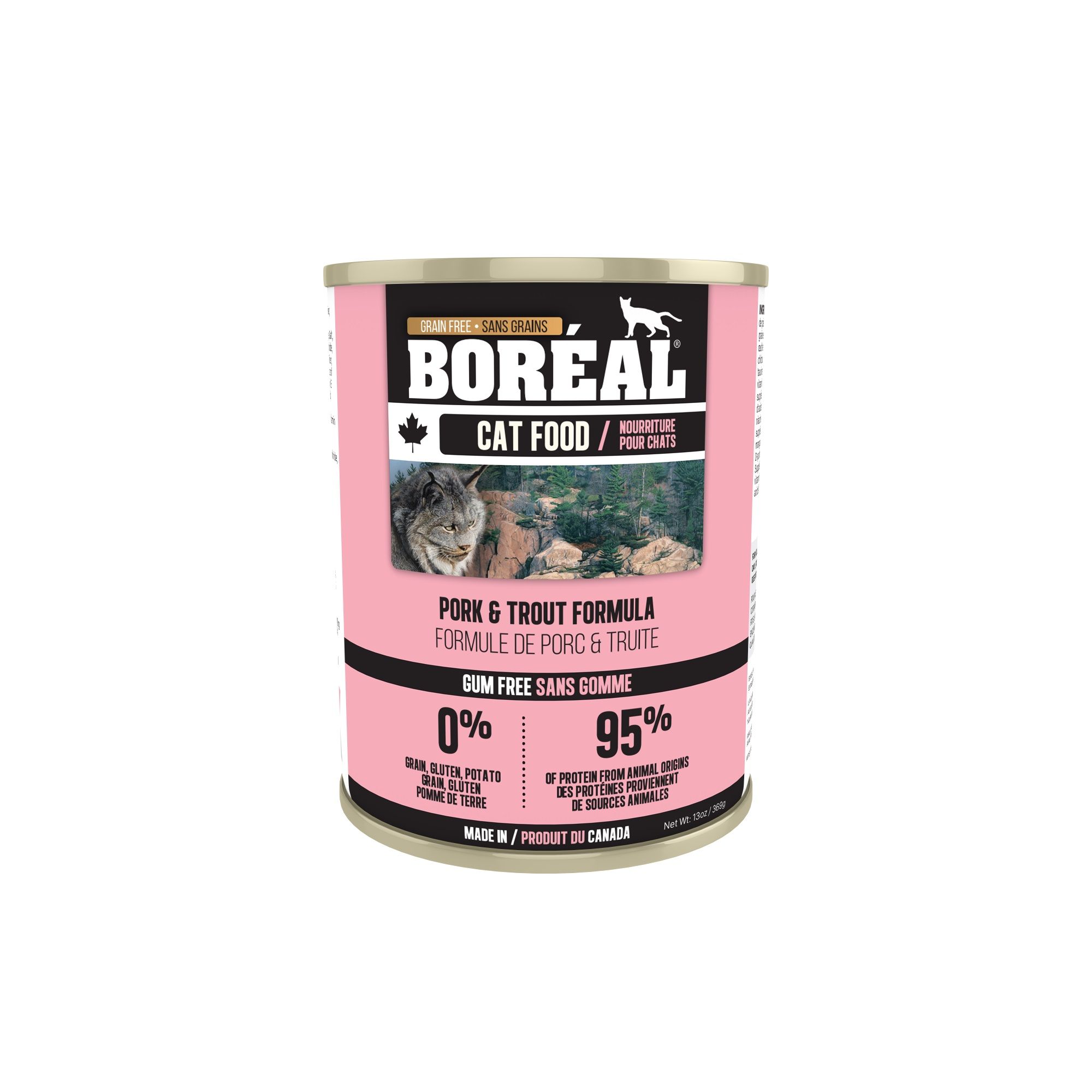 - Les nourritures en conserve pour chats Boréal sont composées à 95 % de protéine de viande ou de poisson. Ligne de nourriture faite au Canada et exempte de gomme et de gluten.