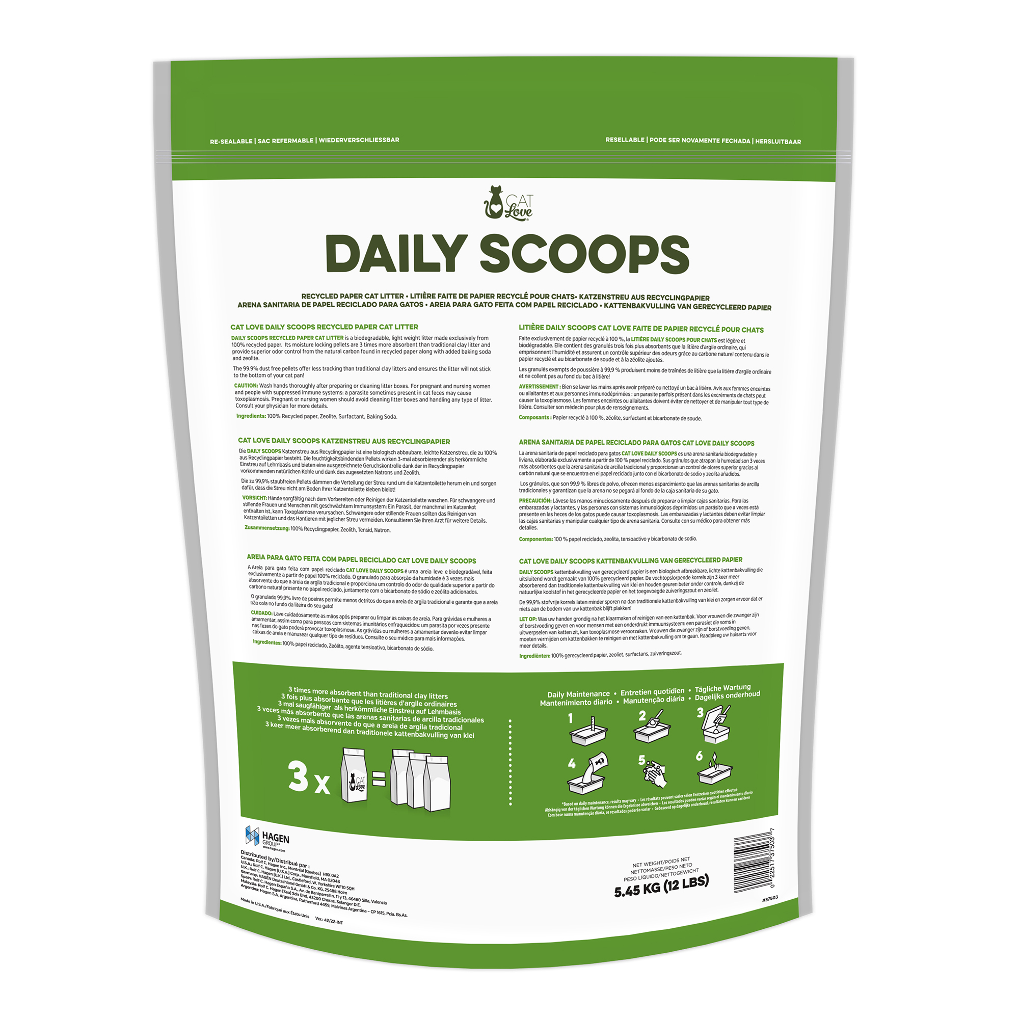 Faite exclusivement de papier recyclé à 100 %, la LITIÈRE DAILY SCOOPS POUR CHATS est légère, biodégradable et écologique. Elle contient des granulés trois fois plus absorbants que la litière d’argile ordinaire, qui emprisonnent l’humidité et assurent un contrôle supérieur des odeurs grâce au carbone naturel contenu dans le papier recyclé et au bicarbonate de soude et à la zéolite ajoutés. Les granulés exempts de poussière à 99,9 % produisent moins de traînées de litière que la litière d’argile ordinaire et ne collent pas au fond du bac à litière!