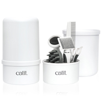 Le kit de toilettage Catit Shorthair répond aux besoins spécifiques du pelage des chats à poils courts et poils longs. L’ensemble contient tous les outils nécessaires au toilettage quotidien : une brosse en nylon, une brosse en métal, une brosse en caoutchouc, un peigne de toilettage fin et un coupe-ongles courbé.