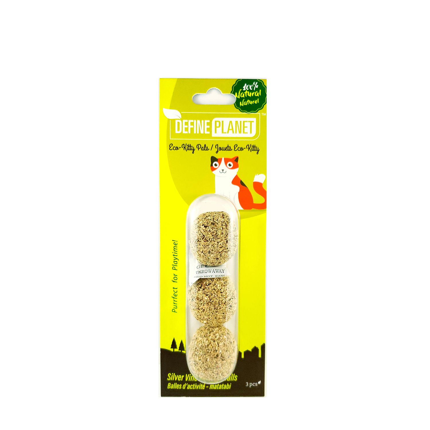 - Les balles d’activité Define Planet sont fabriquées à 100 % de vigne argentée déchiquetée et maintenues ensemble à l’aide de gomme naturelle.
