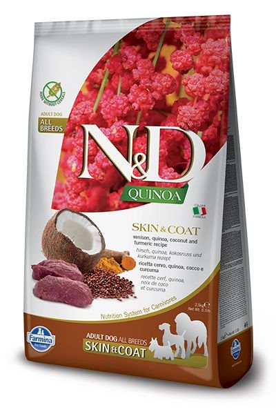 - N&D Quinoa utilise des ingrédients authentiques pour offrir à votre animal un régime complet et équilibré sans céréales, OGM ou conservateurs artificiels. La gamme inclut du quinoa provenant de l’agriculture biologique en Italie.