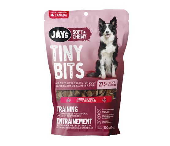 - Les gâteries d’entraînement Tiny Bits pour chiens sont des petites bouchées tendres et moelleuses.