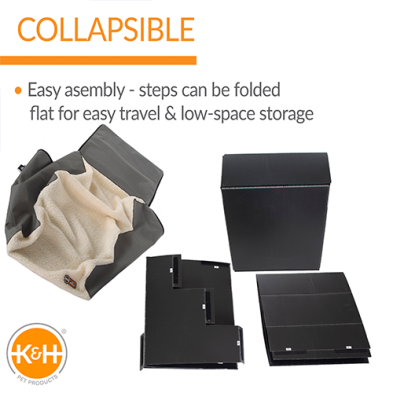 Les marches pour animaux K&H Pet Products sont l’accessoire idéal pour aider vos animaux à monter sur un canapé ou un lit surélevé. Leurs housses résistantes sont amovibles et lavables en machine pour un entretien facile. Disponibles en 3 et 4 marches, elles s’adaptent à la hauteur de vos meubles. Leur conception unique et leur légèreté facilitent leur déplacement d’une pièce à l’autre. Les marches pour animaux K&H sont pliables et se démontent à plat pour faciliter les déplacements ou le rangement dans un espace réduit. Recommandées pour les chiens de petite et moyenne taille et les chats de toutes tailles (supporte jusqu’à 22,7 kg).