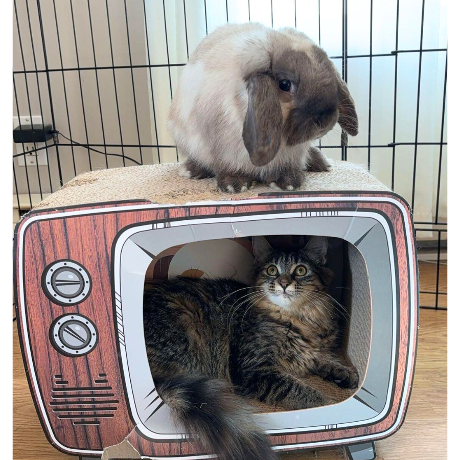 - Abri en forme de téléviseur parfait pour vos petits animaux;