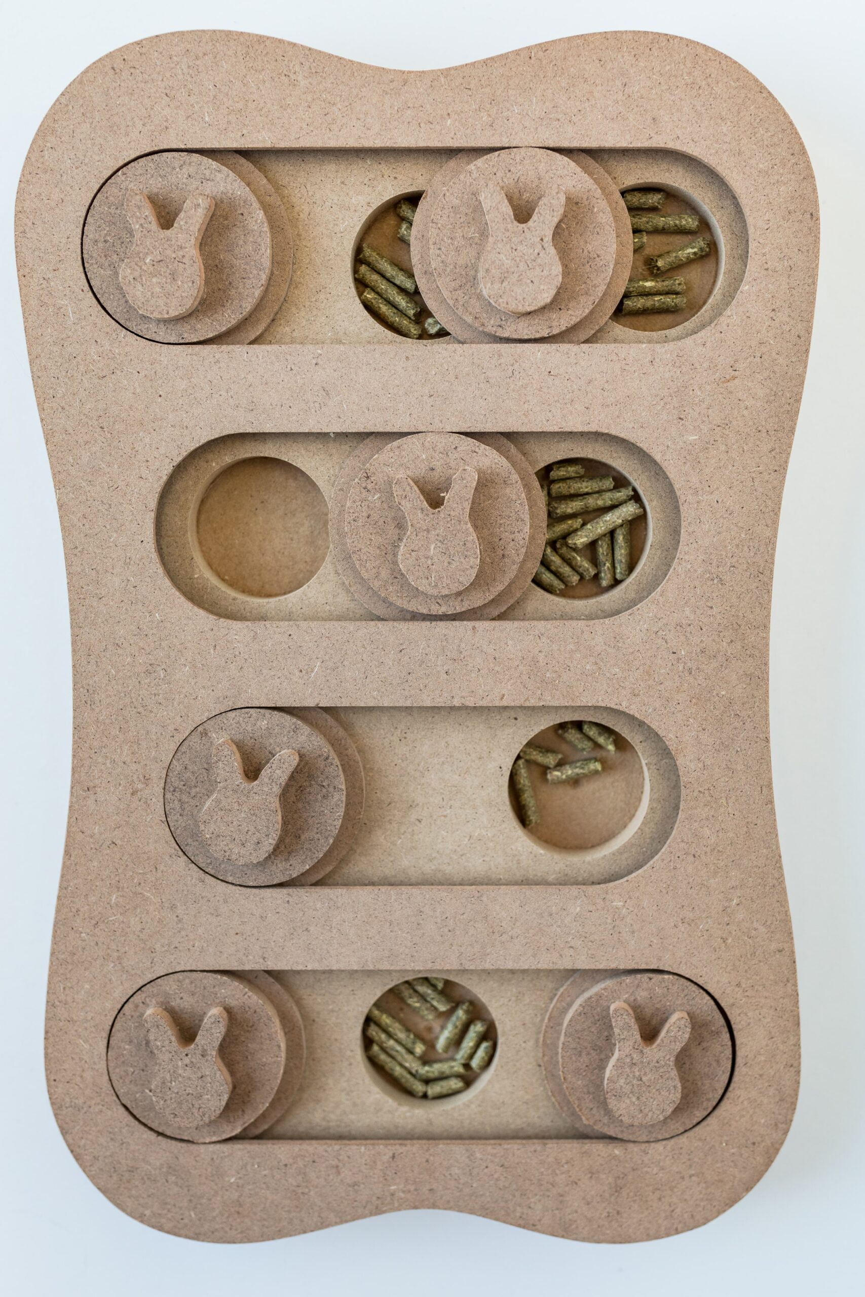L’animal doit déplacer les rondelles pour avoir sa gâterie/nourriture.