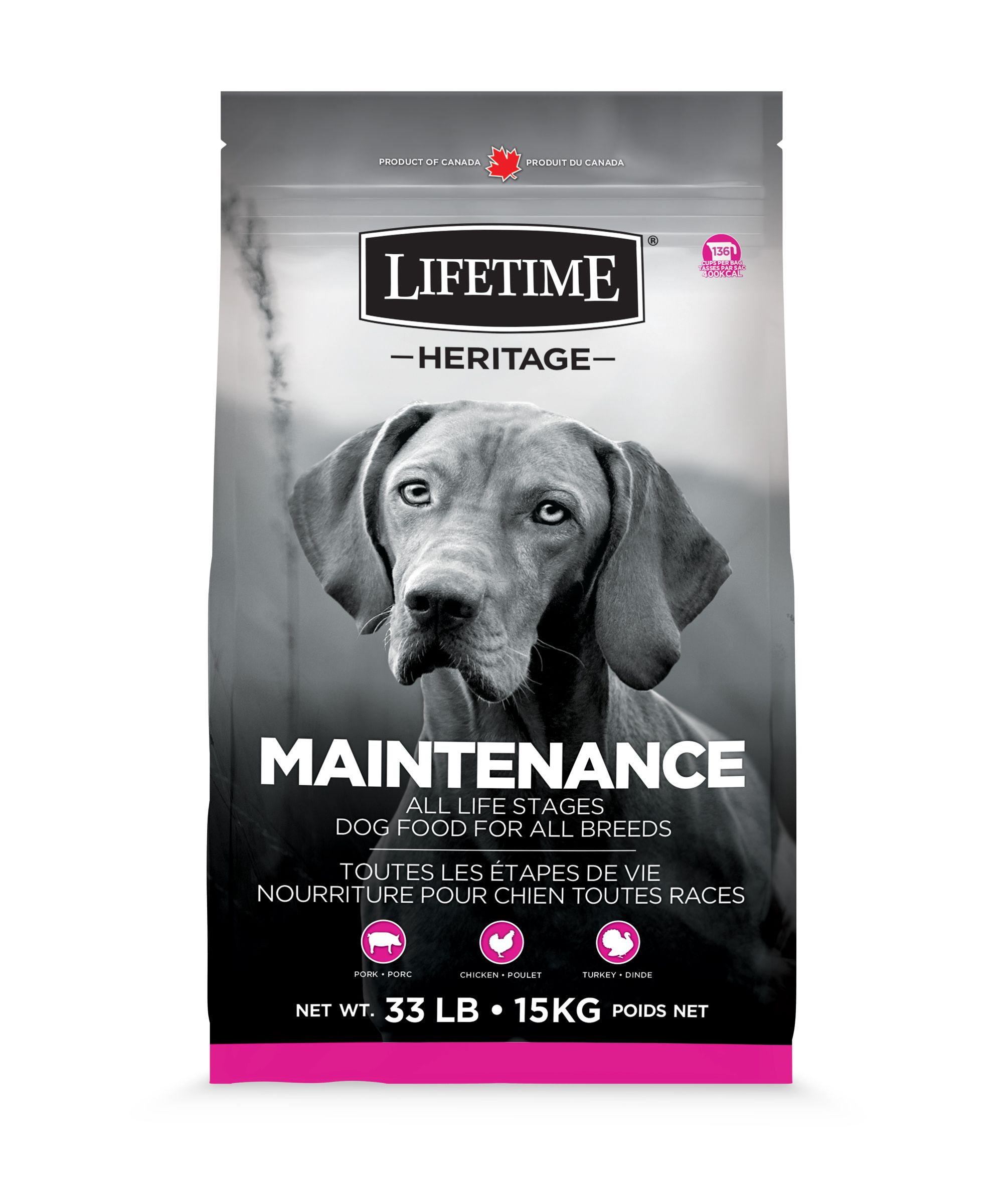 - La nourriture Maintenance par Lifetime est une moulée pour chiens pour toutes les étapes de vie, de chiot au stade adulte.
