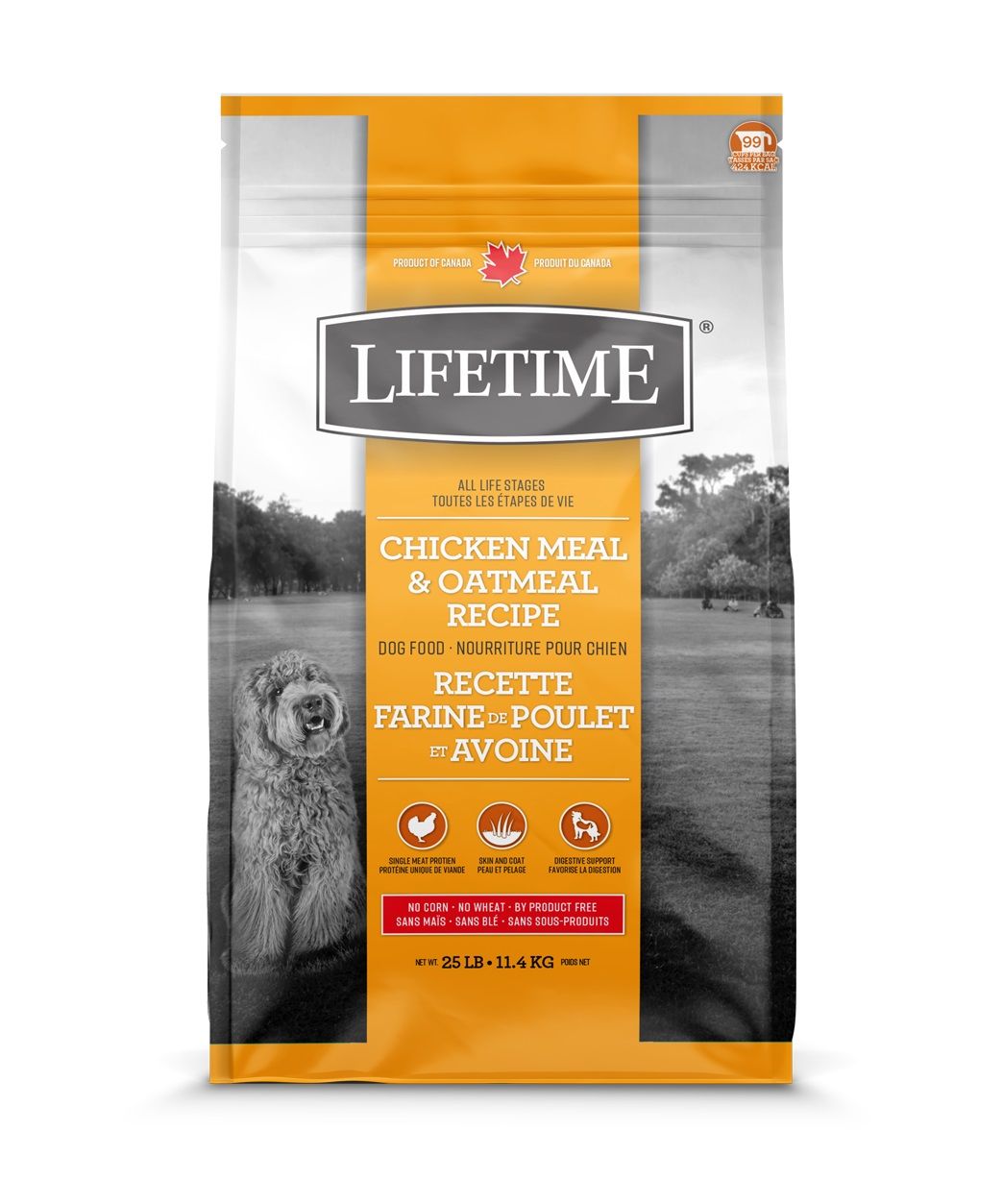 - Remplie de poulet canadien, de grains sains et des prébiotiques, notre recette Lifetime au poulet et avoine aide à soutenir une peau saine, un pelage doux et brillant et une digestion optimale.