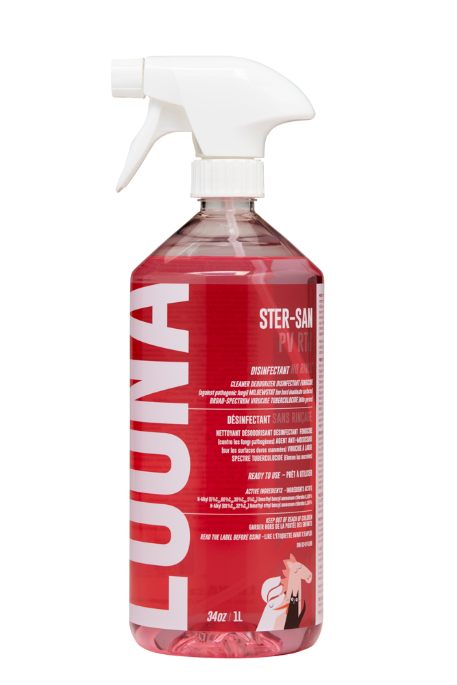 Solution quaternaire à odeur très agréable. Il est destiné aux endroits où la désinfection est primordiale et où il est important d’éliminer les infections bactériennes et virales transportées par les animaux lors de leur visite. Bien nettoyer avant avec » Loona Nettoyant Xtrême » et/ou » Loona Solution à plancher « .