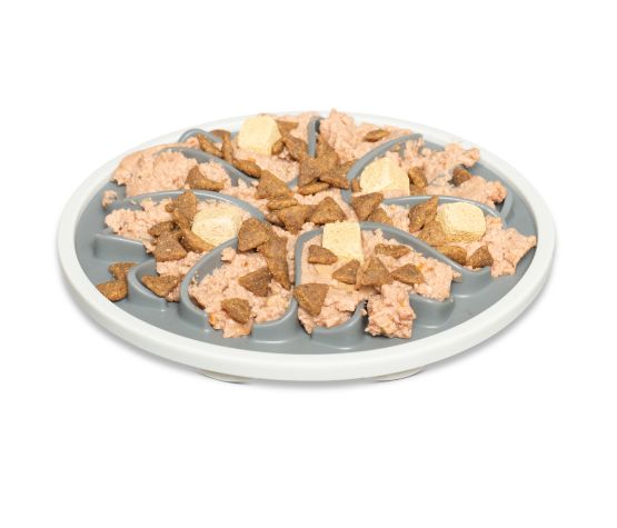 - Conçu avec plusieurs barrières autour des aliments pour prolonger le temps d’alimentation.