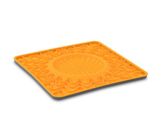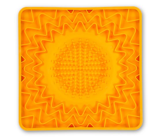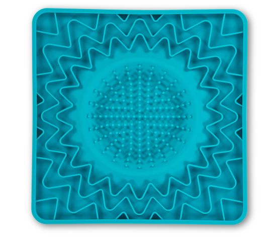 - Le tapis de 10″x10″ dispose d’un bol intégré qui peut contenir jusqu’à 1/2 tasse. Il est fabriqué à partir de silicone de haute qualité, flexible, doux et de qualité alimentaire avec une jante en nylon structuré, est sans BPA et sans PVC, résistant aux odeurs et aux taches.