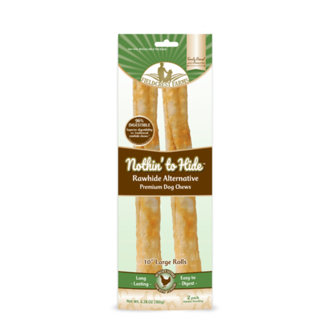 Les friandises à mâcher Nothin’ to Hide sont une alternative hautement digestible aux autres friandises à mâcher. Disponibles dans une large gamme de tailles et de formes, nos friandises à mâcher saines enrobées de poulet sont sûres d’offrir une expérience de mastication sûre et savoureuse à vos animaux de compagnie.