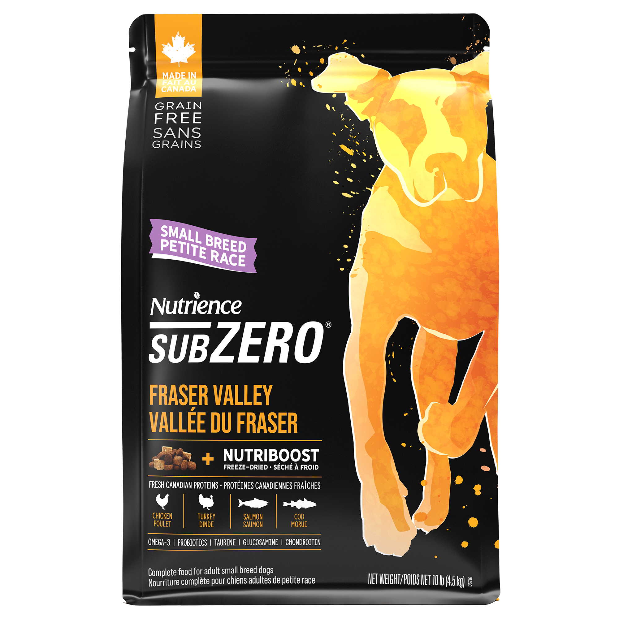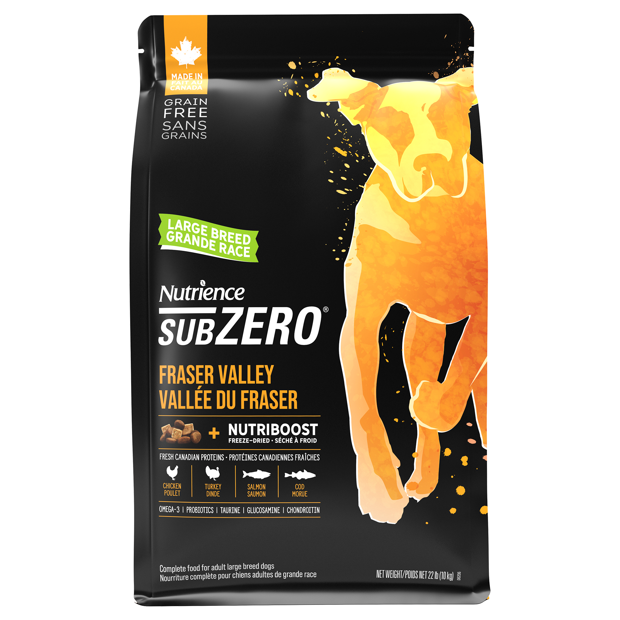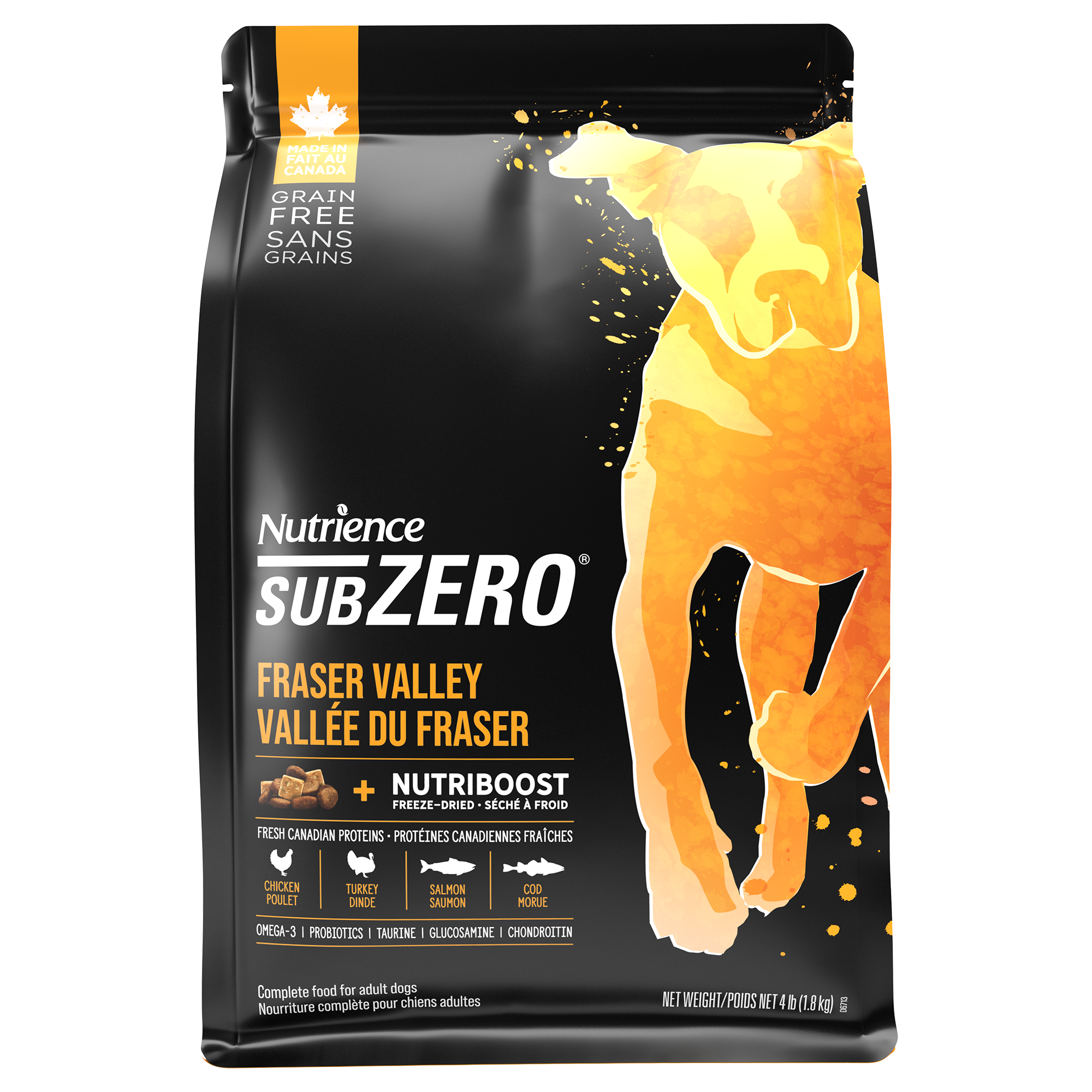 La nourriture SubZero, Vallée du Fraser pour chiens est préparée au Canada avec de la dinde et du poulet frais de sources canadiennes et exempts d’hormones et d’antibiotiques de la vallée du Fraser, en Colombie-Britannique, ainsi que du poisson sauvage du Pacifique canadien. Seules des protéines de la plus haute qualité provenant de sources fiables sont sélectionnées pour nos formulations.
