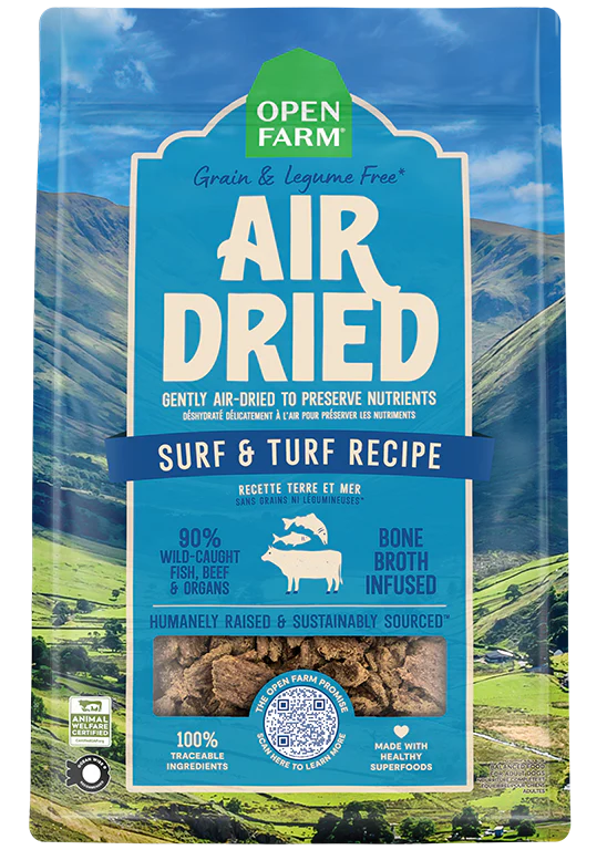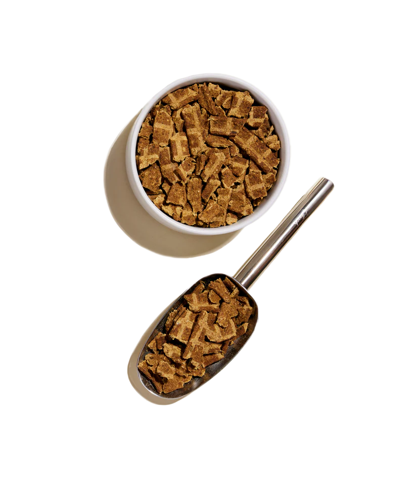 Cette recette charnue ressemblant à de la viande séchée est délicatement séchée à l’air à basse température pour préserver naturellement la nutrition et la saveur alléchante. Fabriquée à partir de 90 % de saumon sauvage et de bœuf et d’organes de bœuf élevés sans cruauté et certifiés G.A.P, sans antibiotiques ni hormones ajoutées, cette recette est l’alternative parfaite au repas pour les parents d’animaux qui cherchent à explorer au-delà des croquettes traditionnelles. De plus, du bouillon d’os et un mélange de superaliments de fruits et légumes sans OGM sont ajoutés pour fournir un repas ou une garniture riche en nutriments, complet et équilibré.