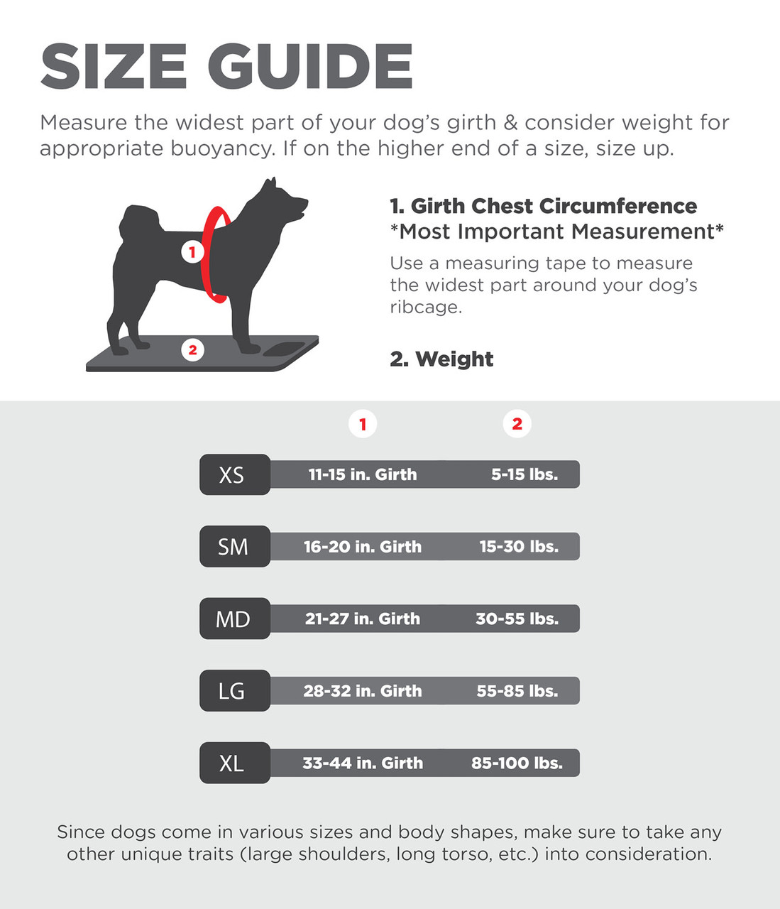 Le gilet de sauvetage pour chien Granby d’Outward Hound est un dispositif de flottaison pour chien haute performance pour la navigation de plaisance, les sports nautiques, la plage, la piscine et d’autres aventures aquatiques avec des chiens. Un flotteur avant pour le cou ajoute un soutien supplémentaire pour les aider à garder la tête hors de l’eau. Les poignées supérieures offrent un moyen facile de récupérer votre chien en cas d’urgence. Les sangles réglables les maintiennent en sécurité dans et hors de l’eau. Pour les petits chiens, les tailles XS et small sont dotées d’une poignée supérieure, et pour les chiens plus grands, les tailles medium à XL sont dotées de deux poignées de sauvetage. Étant donné que les chiens ont des formes et des tailles variées, veuillez sélectionner la taille de gilet de sauvetage pour chien appropriée après avoir pris la mesure de la circonférence de votre chien le long de la partie la plus large de la cage thoracique de votre chien. Assurez-vous de prendre en considération tous les autres traits uniques (c.-à-d. grandes épaules, long torse). Le gilet de sauvetage pour chien Granby est disponible en plusieurs couleurs pour s’adapter à la personnalité de votre chien !