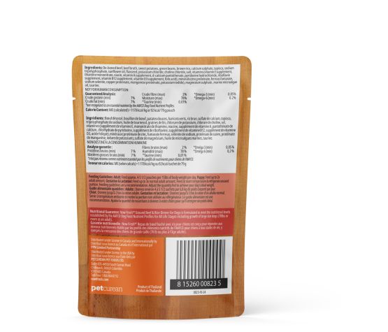 - Cette recette sans poulet comprend du somptueux bœuf désossé haché, du riz brun, des haricots verts et des patates douces, ainsi que des grains entiers riches en fibres et des acides gras oméga-3 et 6 qui favorisent la santé de la peau et du pelage.