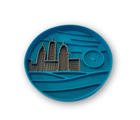 Messy Mutts – Bol d’alimentation en silicone | Bleu à motif de ville