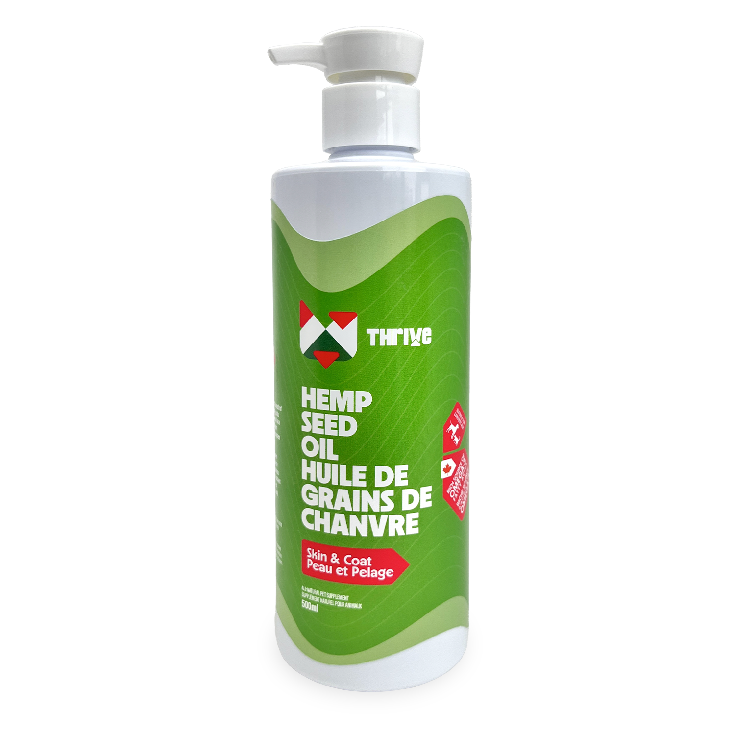 Pressée à froid au Canada, l’huile de grains de chanvre soutien la santé de la peau et du pelage. Une riche source d’acides gras oméga-3 et 6. Idéal pour les animaux allergiques ou intolérants au poisson. L’huile de grains de chanvre a une teneur naturelle en vitamine E de 10 I.U. par 5 ml. Peut soutenir : la digestion, la santé de la peau et du pelage, l’endurance, la santé cardiovasculaire, la santé musculaire, la santé du cerveau, la santé du système immunitaire et la mobilité.