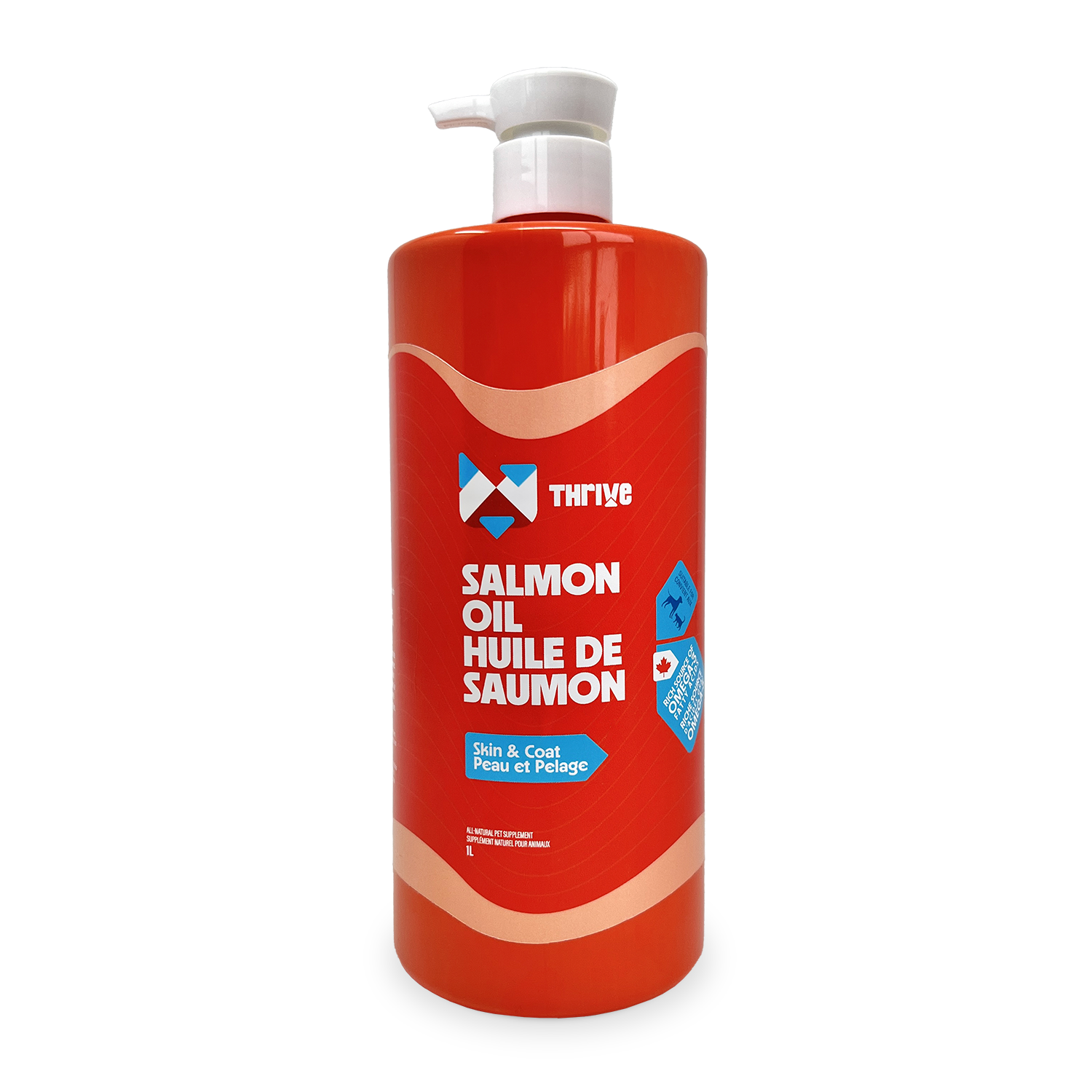 L’huile de saumon Thrive est une excellente huile de poisson de haute qualité et une riche source d’acides gras EPA et DHA avec un niveau élevé d’astaxanthine, un antioxydants naturels (4 mg/kg). Peut soutenir : la digestion, la santé de la peau et du pelage, l’endurance, la santé cardiovasculaire, la santé musculaire, la santé du cerveau, la santé du système immunitaire et la mobilité.